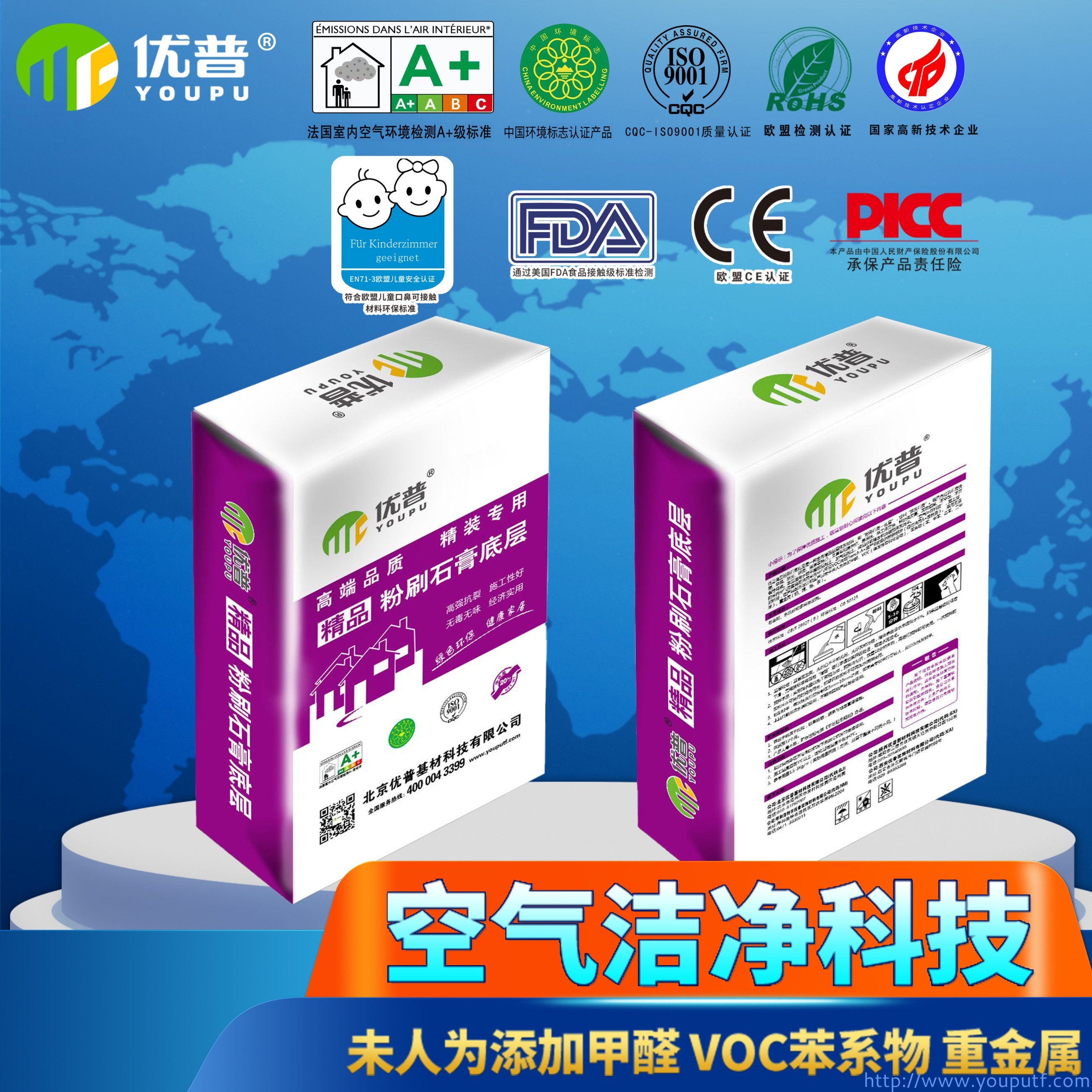 優普精品粉刷石膏底層。是優普公司拳頭產品,具有良好的抗裂、嵌縫、填充和找平功能,適用于混凝土、加氣混凝土、磚混砂漿墻面基層抹灰找平 。綠色環保,歐洲標準,零醛零VOC,通過法國A+認證。